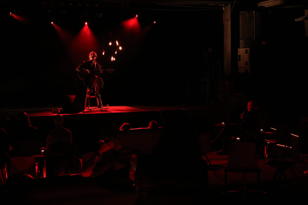 Terwijl DAX het podium op komt lopen en haar gitaar rustig begint te stemmen, is al snel duidelijk dat de setting perfect klopt. De kaarsjes op de tafels in de zaal en akkoorden van de gitaar lijken voor de sfeer van het optreden gemaakt te zijn. ”Het is best wel aangenaam volgens mij, het past er perfect bij,” vertelt ze als opening van de avond.